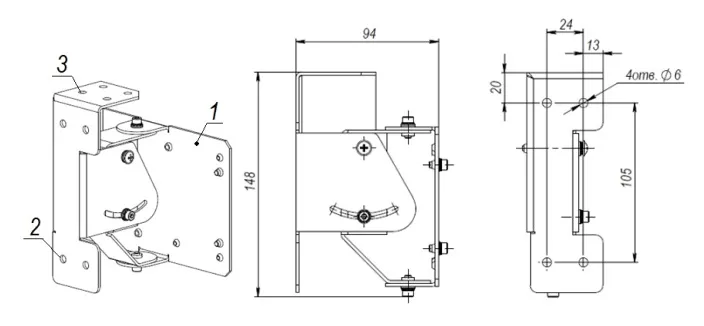 Кронштейн поворотный для ИПДЛ КП-3467 предназначен для поворота извещателя ИПДЛ-Д-I/4р и составных частей извещателя ИПДЛ-Д-II/4р, установленных на основание кронштейна. Кронштейн может устанавливаться непосредственно на стене, столбе или другой вертикальной поверхности, а также может фиксироваться на потолке.