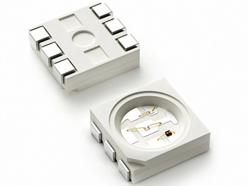 Сила света Iv=200-300 мкд (красный), Iv=1000-1500 мкд (зеленый), Iv=200-350 мкд (синий) при If=20 мА. VF=2-2.4 В (красный). VF=2.8-3.4 В (зеленый/синий).