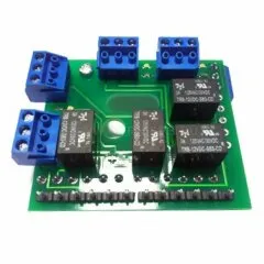 Схема реализована на типовой двухслойной печатной плате размером 70х60мм. На плате размешено 4 реле (3А 125VAC/30VDC), 4 типовых 3х-контактных съемных разъема, 4 светодиода индикации состояния реле. Габариты и конструкция выполнены с учетом удобного размещения, подключения и фиксации непосредственно на плате типового контроллера Gate-8000 с учетом размеров штатного корпуса. Кроме того, на плате имеются специальные вырезы, для визуального и физического доступа к органам управления и индикации платы контроллера Gate. Конструкция платы релейных выходов обеспечивает простую и быструю установку. Для подключения достаточно снять с контроллера разъемы К4, К5 и К6 (причем без отключения коммутации считывателей), на их место установить плату релейных выходов, вернуть разъемы К5 и К6 на соответствующие контакторы сверху платы.