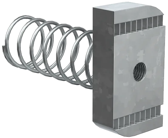 Гайка канальная с удлиненной пружиной предназначена для крепления элементов STRUT-системы между собой, а также кабельных лотков к STRUT-консолям. Используется с профилем сечения 41х41.