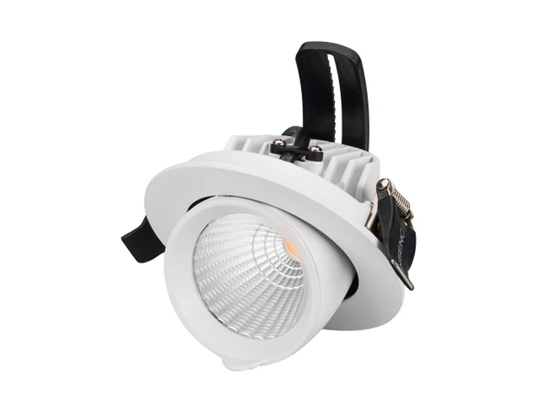 Встраиваемый поворотный круглый светильник, угол 38° / 20Вт. Цвет холодный белый 6000К, дневной белый 4000К, теплый белый 3000К, нейтральный белый 5000К, световой поток холодный белый 1600-1800лм, дневной белый 1600-1800лм, теплый белый 1600-1800лм, нейтральный белый 1600-1800лм. CRI>90. Питание AC180-240V, драйвер в комплекте 500mA 27-42V). Размеры DxH: Ø129х115мм, отверстие для установки 120мм.