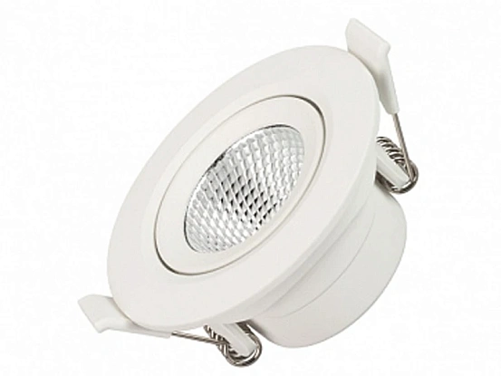 Встраиваемый поворотный светильник 'даунлайт'. Мощность 4.5 Вт. Световой поток 400 лм, 89 лм/Вт, дневной белый 4000 K, CRI>80, UGR80, световым потоком 400 лм и узким углом излучения 36° предназначен для освещения торговых, офисных, жилых и других помещений. Световой модуль может отклоняться на 30°, позволяя мгновенно менять направление света. Светильник легко устанавливается с помощью пружин в монтажное отверстие Ø 60-70 мм. Благодаря встроенному драйверу светильник безопасно и быстро подключается напрямую к сети переменного тока 230 В.