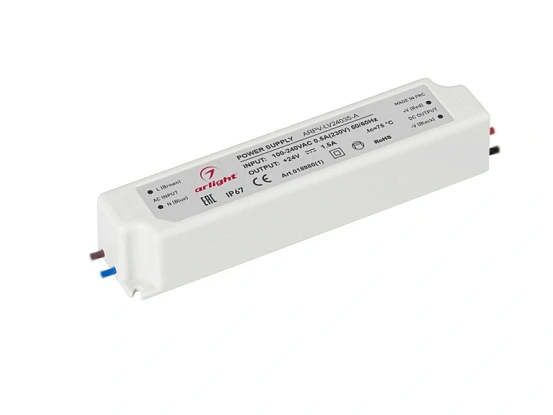 Источник напряжения с гальванической развязкой для светодиодных изделий. Входное напряжение 100 - 240 VAC. Выходные параметры: 24 В - 1,46 А, 12 В - 3 А, 35 Вт. Встроенный PFC >0,5. Герметичный пластиковый корпус IP 67. Рабочая температура -30…+70C⁰. Габаритные размеры длина 148 мм, ширина 32 мм, высота 29 мм. Гарантийный срок 3 года.