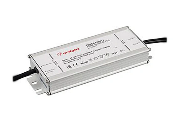 Блок питания для светодиодных лент, корпус металл IP67, мощность 150 Вт, Входное напряжение 120-240V, PF>0,95, Размер 161x67.5x33,5 мм. Рабочая температура -55+70 С. Гарантия 5 лет.