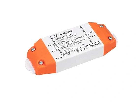 Источник напряжения с гальванической развязкой для светодиодных изделий. Входное напряжение 220-240 VAC. Выходные параметры: 24 В, 1.25 А, 12 В, 2.5 А, 30 Вт. Встроенный PFC >0.9. Негерметичный пластиковый корпус IP 20. Габаритные размеры длина 123 мм, ширина 44,6 мм, высота 19,2 мм. Гарантийный срок 5 лет.