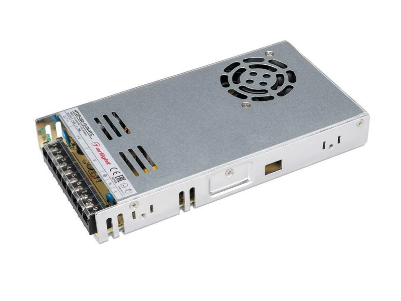 Блок питания с вентилятором (с автоконтролем температуры), с корректором мощности (PF>0,95), выход 12V 29А или 24V 14.6А в зависимости от модификации, мощность 350W, размеры 215x115x30 мм, 100-240 VAC, температура -30+50 С, защита от перегрева. Совместимость со стандартом EMC. Гарантия 3 года.