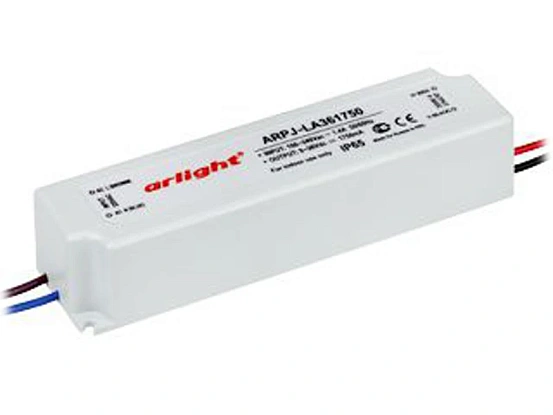 Источник тока 1750mA (+-3%), вых. напряжение 9-36V, макс. 63Вт. Пластиковый корпус IP65, размеры LxWxH 162x42x30 мм. Питание 100-240 VAC, без PFC. Диапазон раб. темп. -20..+50 С. Вес 350 г. Гарантия 2 года.