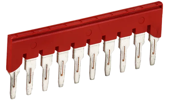 Перемычки (гребенки) используются для электрического соединения рядов клеммных сборок пружинного типа (клеммы КПИ) в системах распределения. Устанавливаются в соответствующие пазы клеммы. Выполнены в виде медных пластин с 2, 3 или 10 выводами типа PIN, заключенных в изолятор.