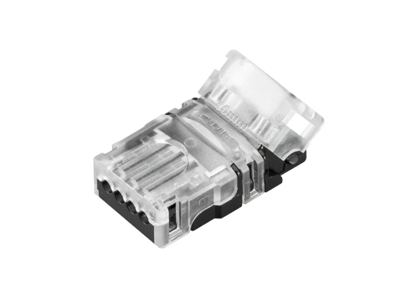 Одиночный коннектор (без провода) для подключения питания к одноцветным открытым лентам шириной 10 мм. Очистка провода питания (0,34-0,75 мм2) от изоляции не требуется.