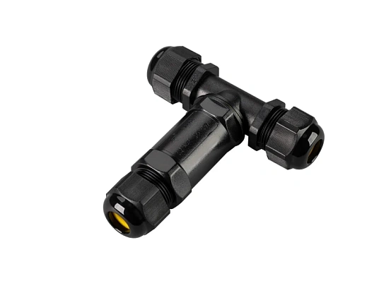 Коннектор пластиковый Т-образный пятиконтактный для соединения проводов диаметром 4-8 мм, сечением 0,5-4 мм2.