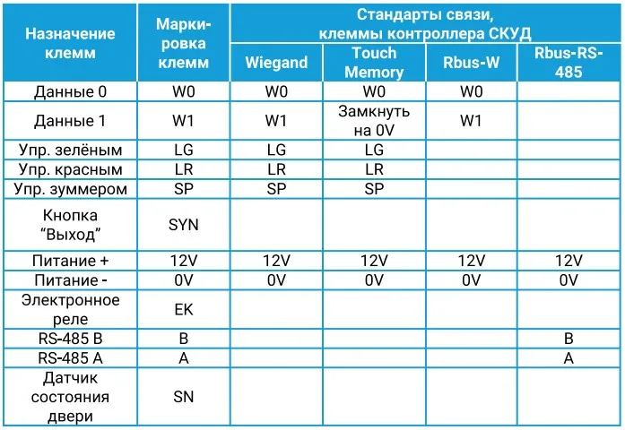 - Выходной интерфейс: Wiegand, Wiegand-26, Touch memory, Rbus, RS-485