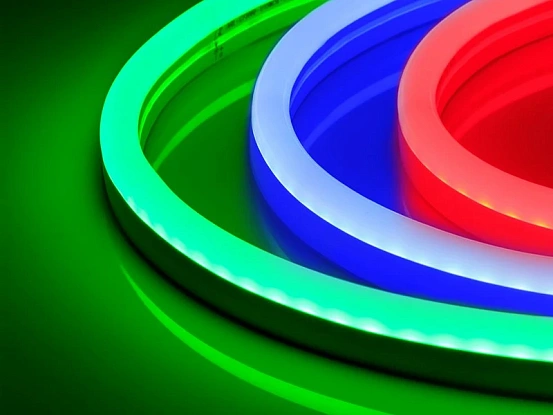 Гибкая герметичная лента (неон серии NEON), сечение 17×26 мм. Светодиоды SMD 5060 72 шт/м. Цвет свечения RGB, угол излучения 120°. Мощность 8 Вт/м, питание 230 В. Класс пылевлагозащиты IP65. Размеры 50000×17×26 мм. Мин. отрезок 1000 мм. Горизонтальный изгиб SIDE, минимальный радиус изгиба 100 мм. Оболочка из высокопрочного композитного материала. Катушка 50 м. Цена за 1 м. Гарантия 3 года.