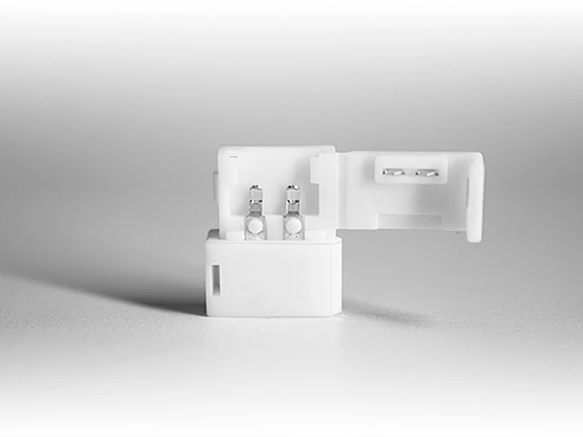 Следует помнить, что коннектор предназначен для лент со степенью герметизации IP 22, т. е. открытые и должен применяться в сухих помещениях или защищенных от попадания влаги устройствах.