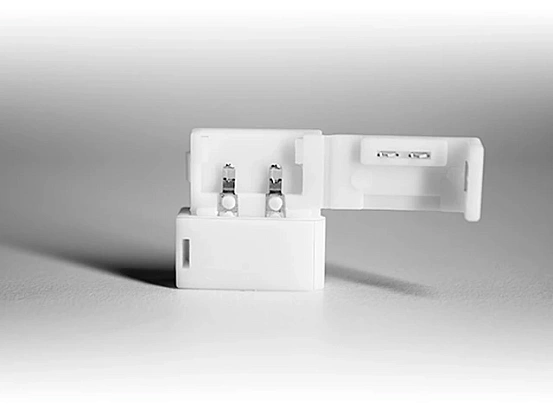 Следует помнить, что коннектор предназначен для лент со степенью герметизации IP 22, т. е. открытые и должен применяться в сухих помещениях или защищенных от попадания влаги устройствах.