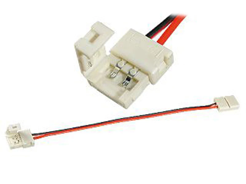 2 разъема с фиксаторами, на проводе 15см, для соединения 2-х отрезков светодиодных одноцветных лент шириной 8мм. Максимальный допустимый ток 3А.