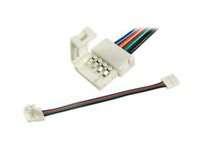 2 разъема с фиксаторами, на проводе 15см, для соединения 2-х отрезков светодиодных RGB лент шириной 10мм. Максимальный допустимый ток 4А. Не рекомендуется соединять длинные отрезки лент!