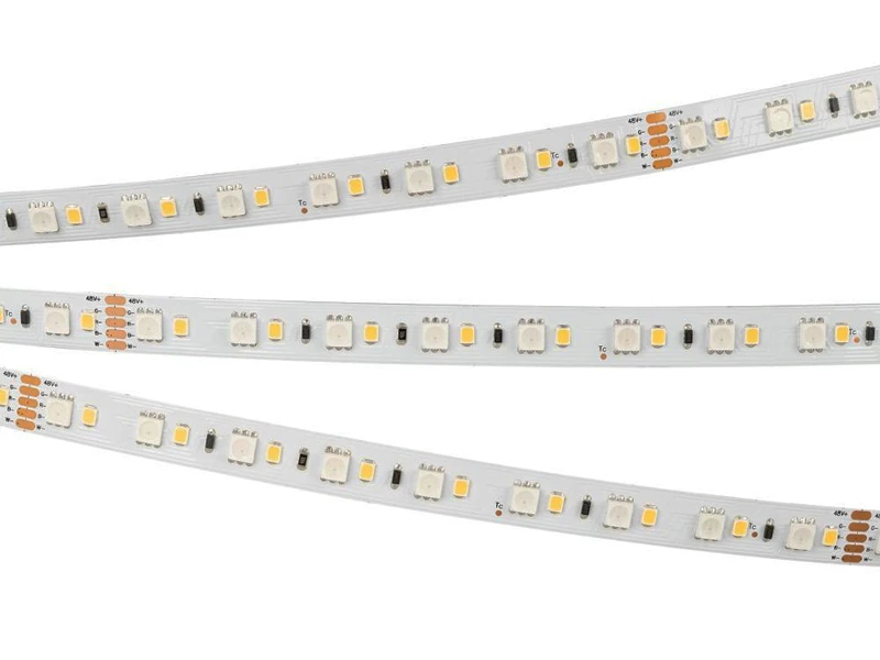 Гибкая стабилизированная лента LUX, подключение 40м в одну линию, светодиоды smd 5060+2835 108шт/м, белая плата 12мм, скотч 3М. Цвет RGB + ДНЕВНОЙ 4000К, RGB + БЕЛЫЙ 6000К, RGB + ТЕПЛЫЙ 3000К. Питание 48V, мощность 15 Вт/м, угол 120° Размеры 40000х12x2.1мм. Мин.отрезок 166.67мм, 18 шт светодиодов. Пакет 40м. Цена за 1м.