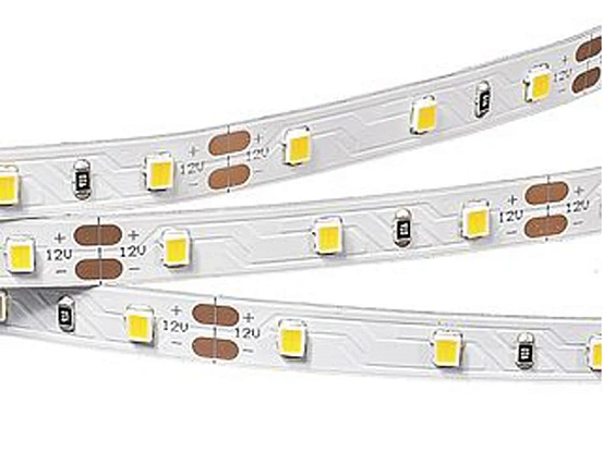 Гибкая лента BAT, светодиоды smd 2835, 60 шт/м (300шт на 5м), белая плата 8 мм, скотч 3М. Мощность 7.2 Вт/м (36 Вт на 5м), угол 120°, цветопередача CRI>85. Размеры 5000х8x1.5мм. Мин.отрезок 50мм, 3 светодиода. Цена за 1м.