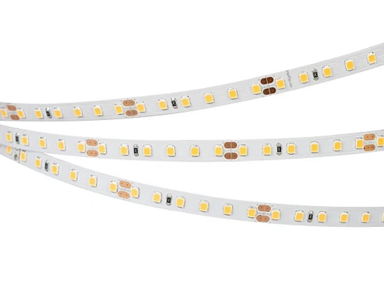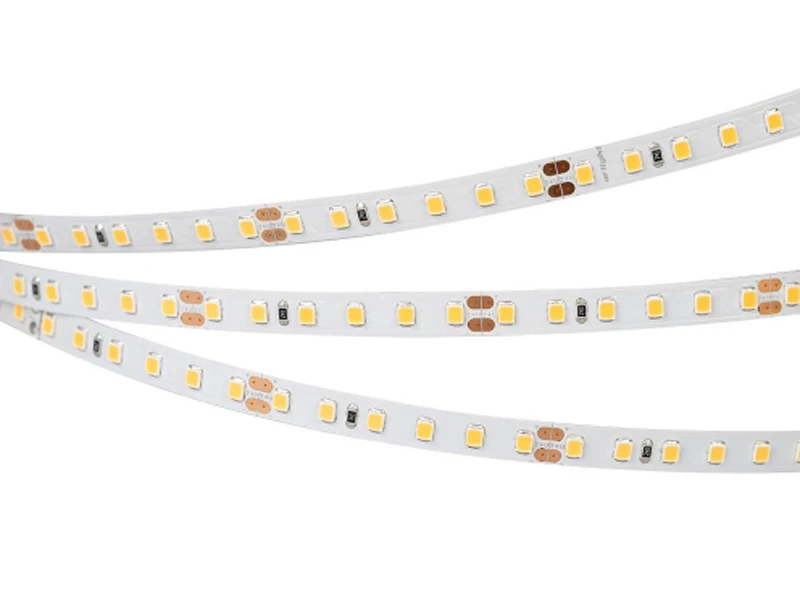 Гибкая лента CRI98, светодиоды smd 2835, 120 шт/м (600шт на 5м), белая плата 8 мм, скотч 3М. Мощность 14.4 Вт/м (72 Вт на 5м), угол 120°, высокая цветопередача CRI=95..98. Размеры 5000х8x1.5мм. Мин.отрезок 50мм, 6 светодиодов. Цена за 1м.