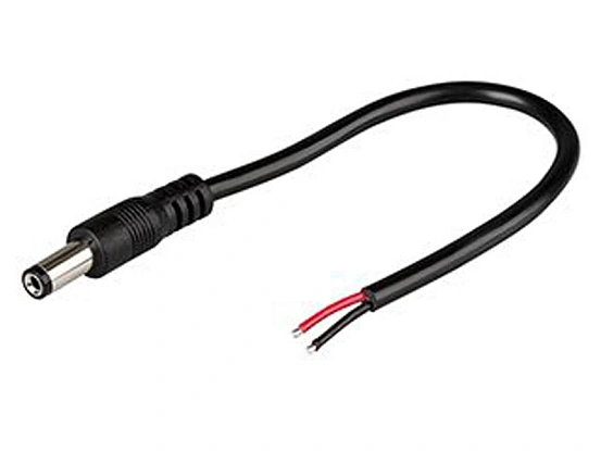 Круглый разъем DC 2-pin ПАПА для соединения отрезков одноцветных светодиодных лент. Провод 20AWG 15 см. Максимальный допустимый ток 3А. Ответный разъем МАМА поставляется отдельно.