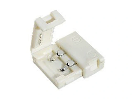 2-х сторонний разъем с фиксаторами для соединения 2-х отрезков светодиодных одноцветных лент шириной 10мм. Без провода. Материал - пластик. Максимальный допустимый ток 3А.