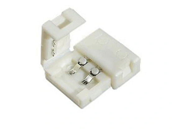 2-х сторонний разъем с фиксаторами для соединения 2-х отрезков светодиодных одноцветных лент шириной 8мм. Без провода. Материал - пластик. Максимальный допустимый ток 3А.