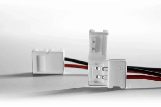 Следует помнить, что коннектор предназначен для лент со степенью герметизации IP 22, т. е. открытые и должен применяться в сухих помещениях или защищенных от попадания влаги устройствах.