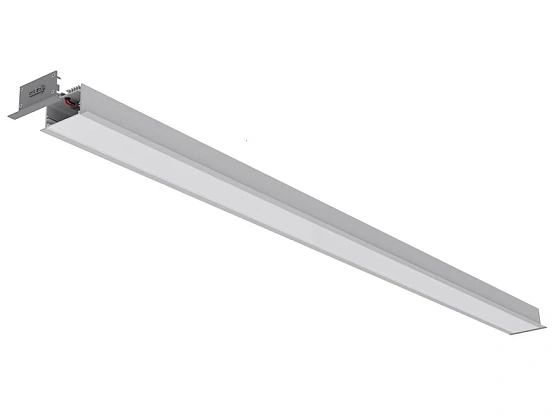 Надежный и стильный линейный модульный светильник, состоящий из алюминиевого корпуса, поликарбонатного светорассеивателя, светодиодного модуля и источника питания. Встраивается в гипсокартонный потолок. Эффект сплошной линии света.