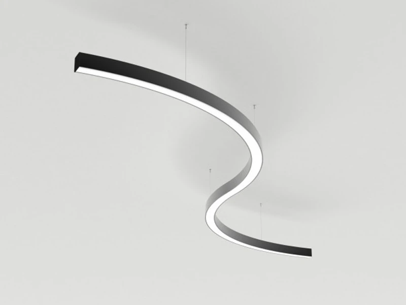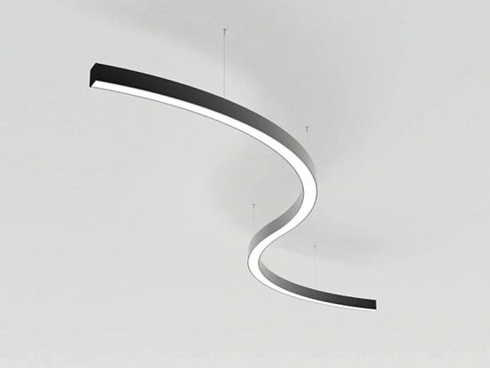 Светильник S-образный из профиля SL-ARC-3535-D1500-A90 BLACK, свечение вниз. Цвет свечения: Дневной белый 4000 K, Теплый белый 3000 К (Дуговая линейка ARC арт.027642 в 1 ряд).