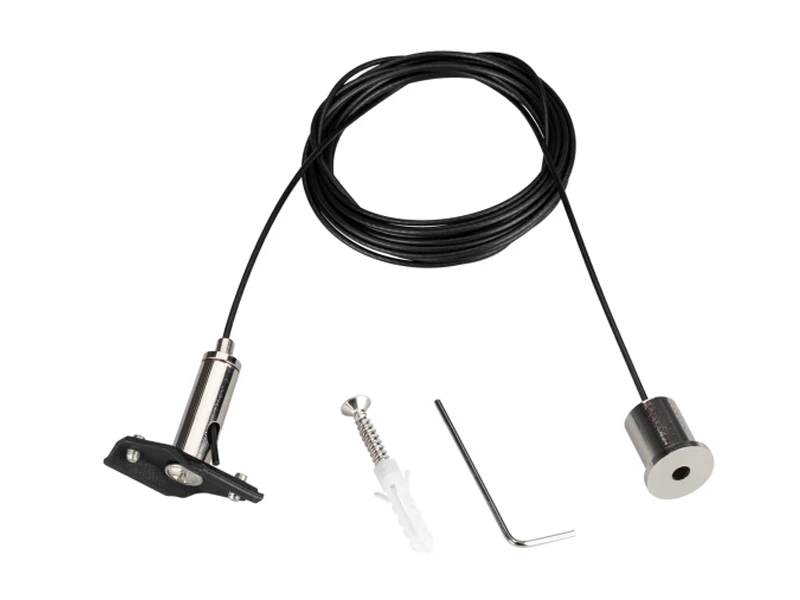 В комплекте тросовый держатель, трос, фиксатор для троса.