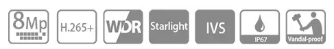 - 8 Мп, матрица 1/2.7' CMOS, работа при низкой освещенности, изображения с высоким разрешением