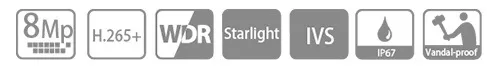- 8 Мп, матрица 1/2.7 КМОП, работа при низкой освещенности, изображения с высоким разрешением