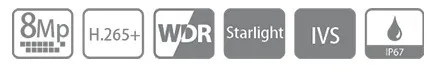 - 8 Мп, матрица 1/2.7' CMOS, работа при низкой освещенности, изображения с высоким разрешением