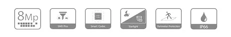- 8 Мп, матрица 1/2.8” CMOS, работа при низкой освещенности, изображения с высоким разрешением