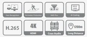 - Вход камеры HDCVI 4K, 6MP, 5MP, 4MP, 1080p при 25/30 кадров в секунду, 720p при 50/60 кадров в секунду, 720p при 25/30 кадров в секунду