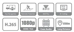 - Вход камеры TVI 5MP, 4MP, 1080p при 25/30 кадров в секунду, 720p при 25/30 кадров в секунду