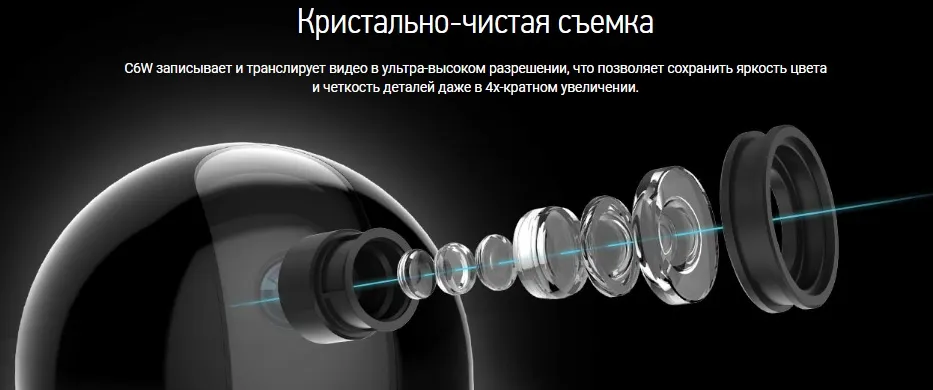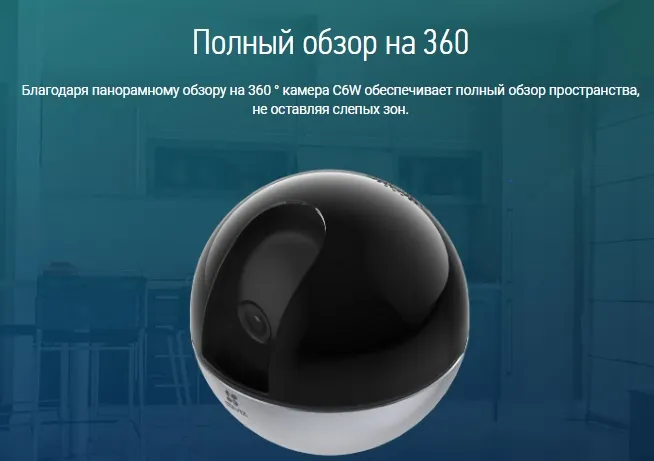 Компактная IP камера C6W со встроенным динамиком и микрофоном. Модель сразу привлекает внимание, причем как функционалом, так и оригинальным шарообразным дизайном. Рекомендуемое место установки – потолок, так как C6W способна контролировать пространство с обзором 360 градусов и без слепых зон. Монтажное основание входит в комплект поставки.