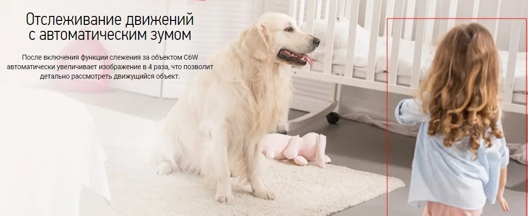 Поворотная 4 Мп мини-камера C6W имеет функцию авто-слежения за объектом в движении. После ее включения автоматически активируется 4х зум, что позволяет рассмотреть мельчайшие детали цели. Через приложение EZVIZ для смартфонов легко включить режим приватности (при этом объектив видеокамеры C6W отключается) и выполнить другие настройки. Поддерживается также голосовое управление через Google-ассистента.