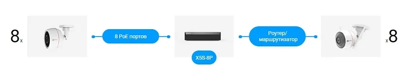 X5S PoE работает не только с камерами Ezviz, но и с камерами других производителей. Больше не придется ограничиваться определенными моделями при создании своей собственной системы видеонаблюдения для дома и бизнеса.