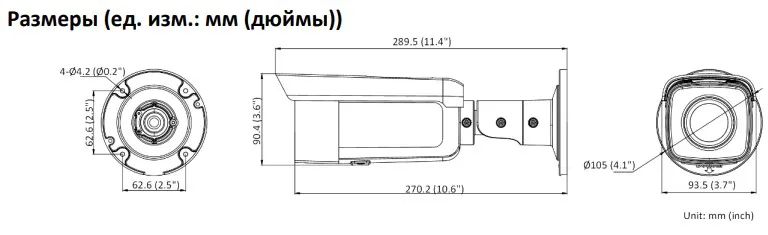 Размер камеры Ø, 105 x 289.5 мм