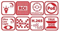 - Маскирование области До 24 масок области, настраиваемые многоугольные области, цвета и расположение масок области