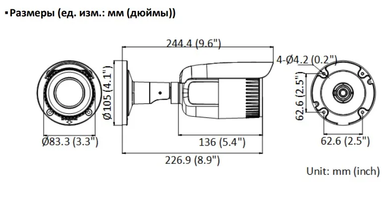 Размер камеры Ø, 105 244.4 мм (4.1 9.6)