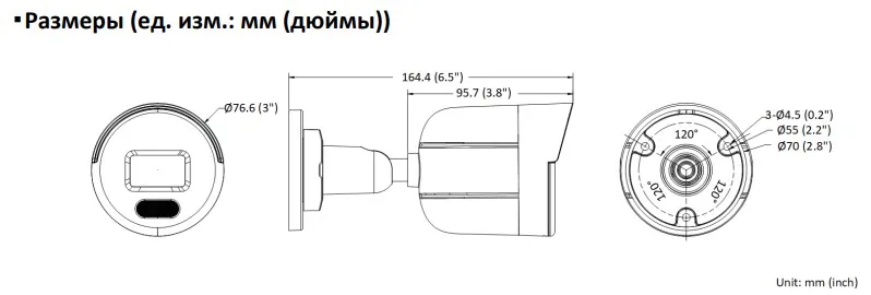 Размер камеры Ø, 76.6 164.4 мм (Ø, 3 6.5)