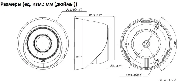Размер камеры Ø, 110 85.3 мм (Ø, 4.3 3.4)