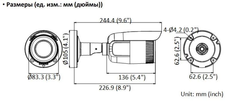 Размер камеры Ø, 105 244.4 мм (4.1 9.6)