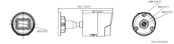 - Тип объектива и угол обзора 2.8 мм, по горизонтали: 107°, по вертикали: 57°, по диагонали: 127°