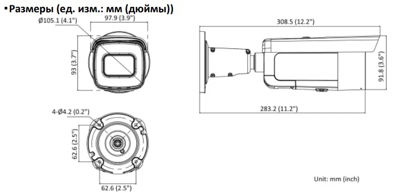 Размер камеры 308.5 97.9 93 мм (12.2 3.9 3.7)