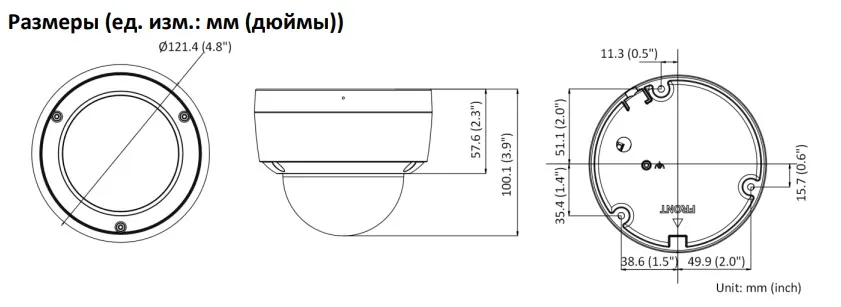 Размеры Ø, 121.4 100.1 мм (Ø, 4.8 3.9)