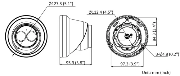 - Тип объектива и угол обзора 2.8 мм: по горизонтали: 103°, по вертикали: 55°, по диагонали: 122°