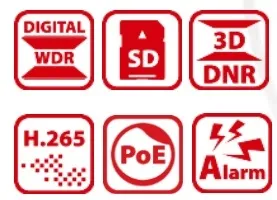 - Цифровой WDR, 3D DNR, HLC, интеллектуальная ИК-подсветка